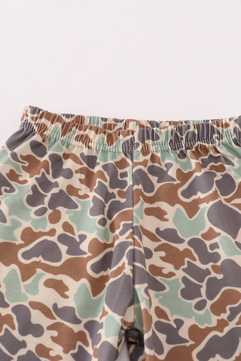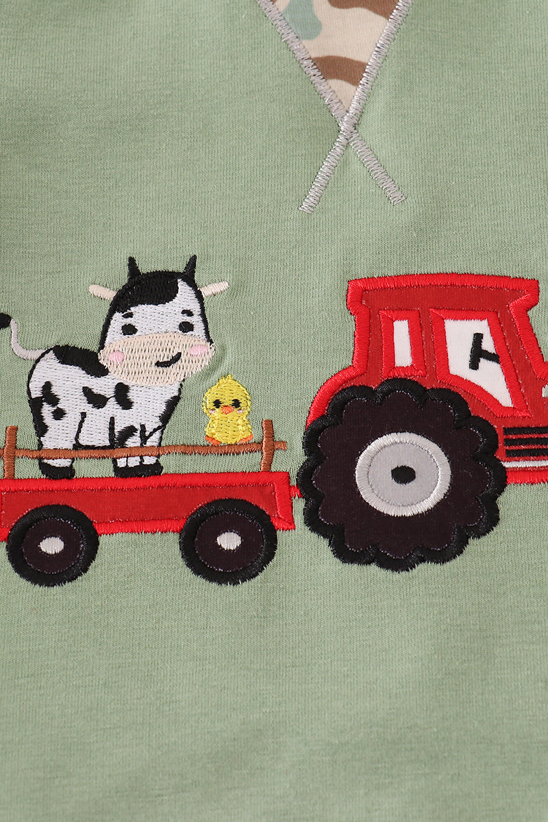 Green camouflage cow tractor applique pants set