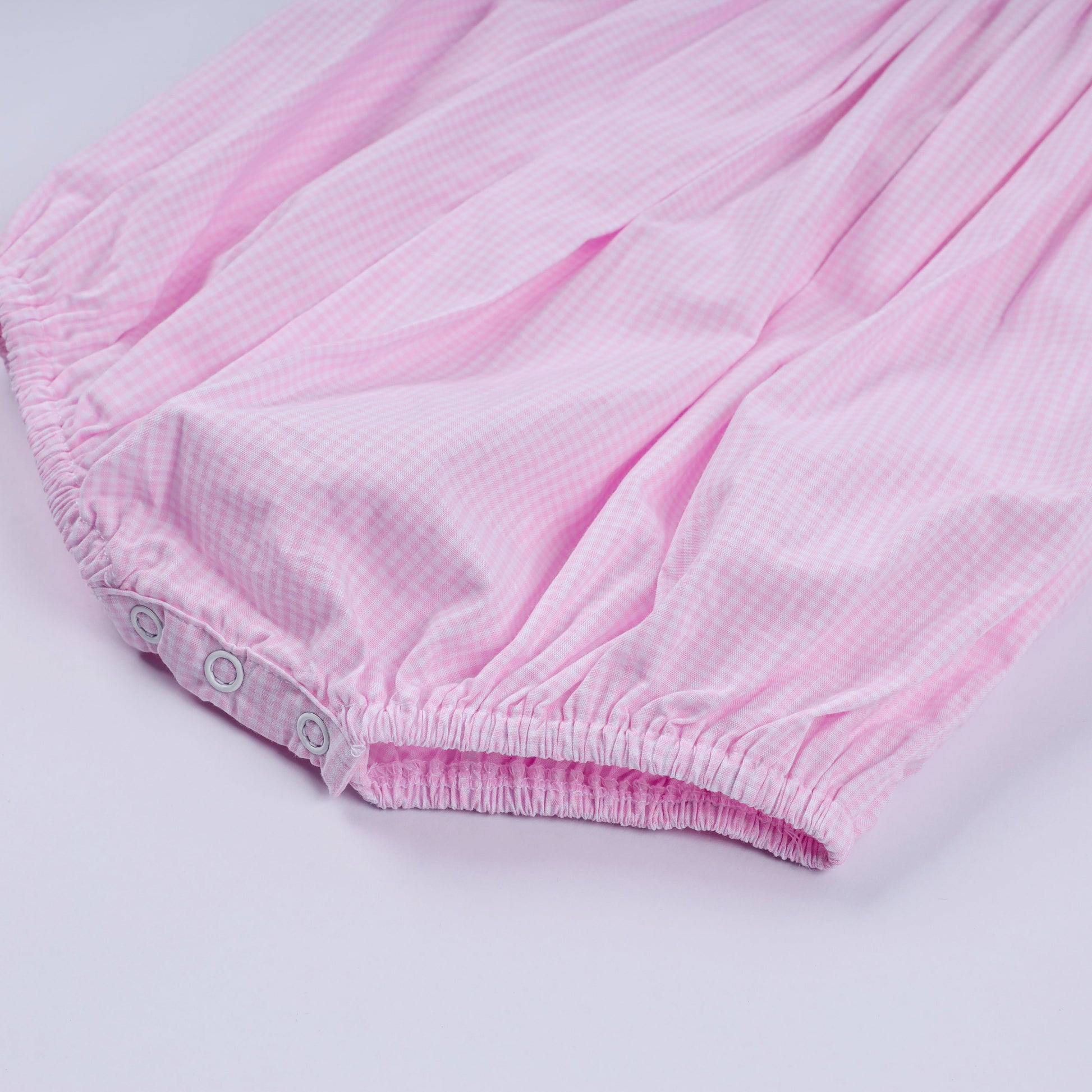 Meet the dress that's as fun as playtime itself! This charming bubble features a classic red plaid pattern with delightful hand-smocked detailing that adds texture and visual interest. The character design brings personality to every wear, while ruffled accents frame the neckline and sleeves for an extra touch of whimsy. Perfect for little ones who love standing out, this playful piece combines timeless smocking craftsmanship with modern character appeal. Comfortable, cheerful, and undeniably adorable—it's the kind of dress that makes getting dressed an adventure.