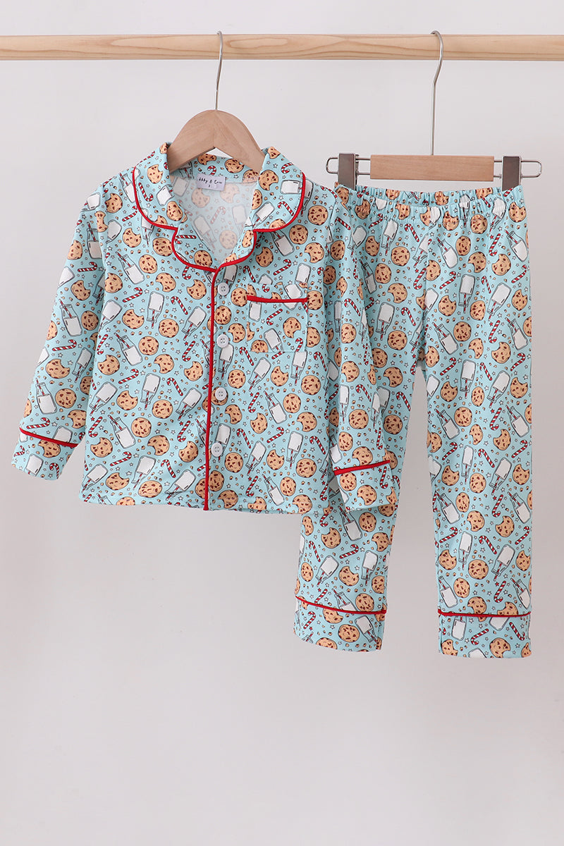 Get cozy and festive with this Santa Claus cookie print pajama set! Perfect for holiday mornings or winter nights, these pajamas bring a playful touch to your seasonal wardrobe. The charming cookie designs add a sweet holiday spirit while keeping you comfy all night long. Ideal for lounging or gifting, this set makes every cozy moment a little more magical.